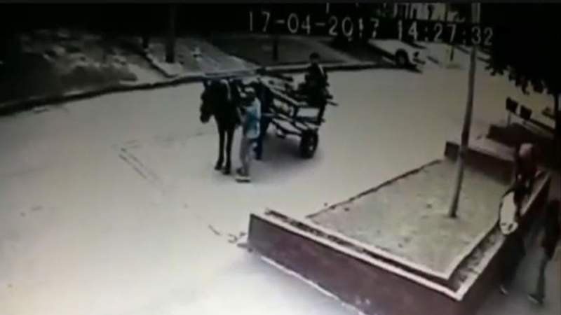Las cámaras de un comercio tomaron las imágenes en las que se puede ver claramente como los malhechores bajan del carrito y les roban sus pertenencias a las víctimas rápidamente y huyen del lugar con su caballo.