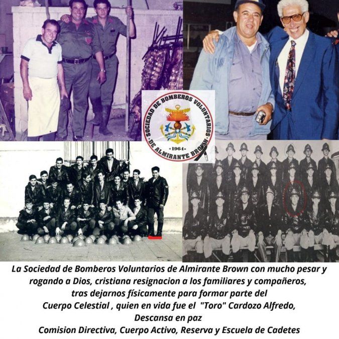 Alfredo "Toro" Cardozo tenía 79 años. Fue el primer integrante registrado en los Bomberos Voluntarios de Almirante Brown y era muy querido por la comunidad.