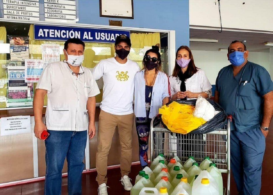 Así fue recolectando donaciones de alcohol en gel, vestimenta de protección y elementos de limpieza que luego fueron entregados al personal de salud. Ayer también estuvo presente en el barrio Numancia de Guernica en donde entregó alimentos a un comedor que entrega un plato de comida a más de 200 familias.