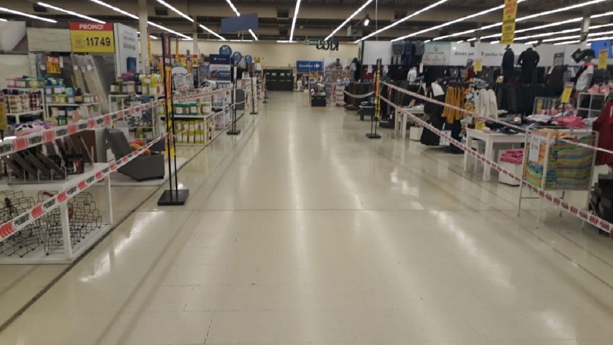 Sin embargo en los supermercados e hipermercados, que pueden permanecer abiertos durante el aislamiento social debido a que son considerados comercios esenciales, seguían vendiendo todo tipo de productos al público de manea presencial.