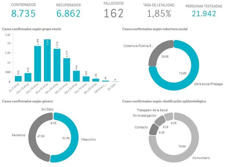 Desde la Sala de Situación de la provincia de Buenos Aires, se desprende que Almirante Brown llegó a los 8735 casos positivos, 6862 recuperados y 162 fallecimientos. La tasa de mortalidad bajó a 1,85% ya son 21.942 los testeos realizados en el distrito.
