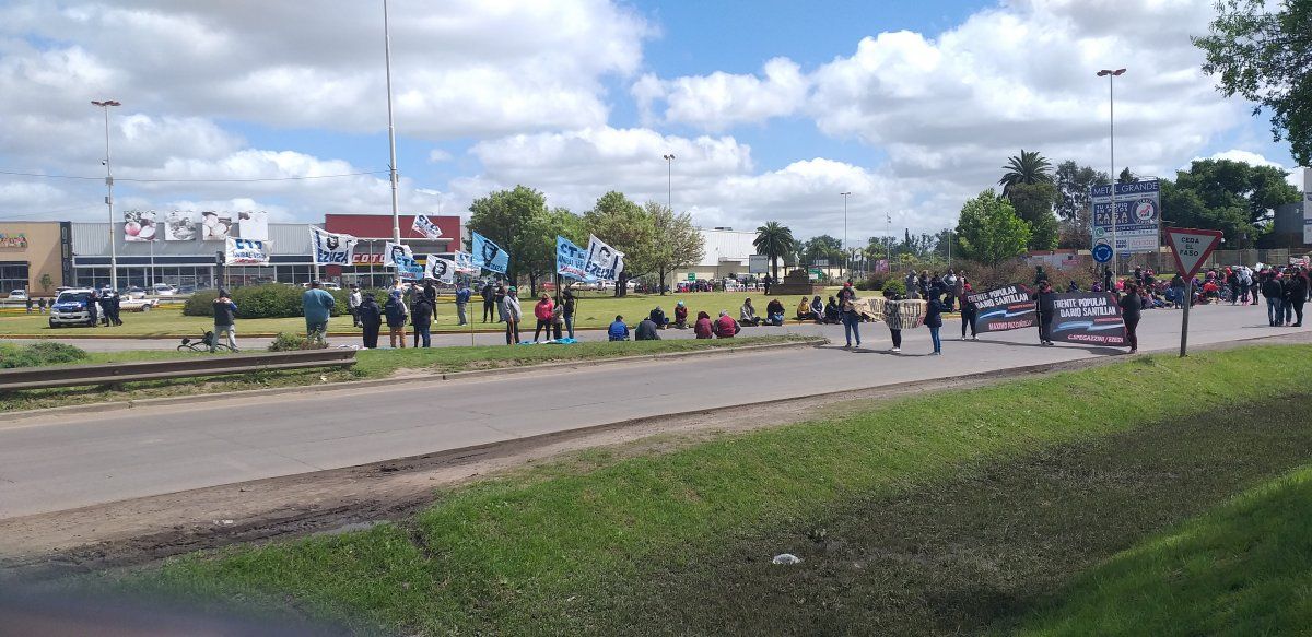 Organizaciones sociales pertenecientes al Frente de Izquierda cortaron la circulación en la rotonda de Canning con gomas y piedras, en repudio a los graves incidentes que ocurrieron durante la mañana de este jueves en el desalojo de la toma de tierras.