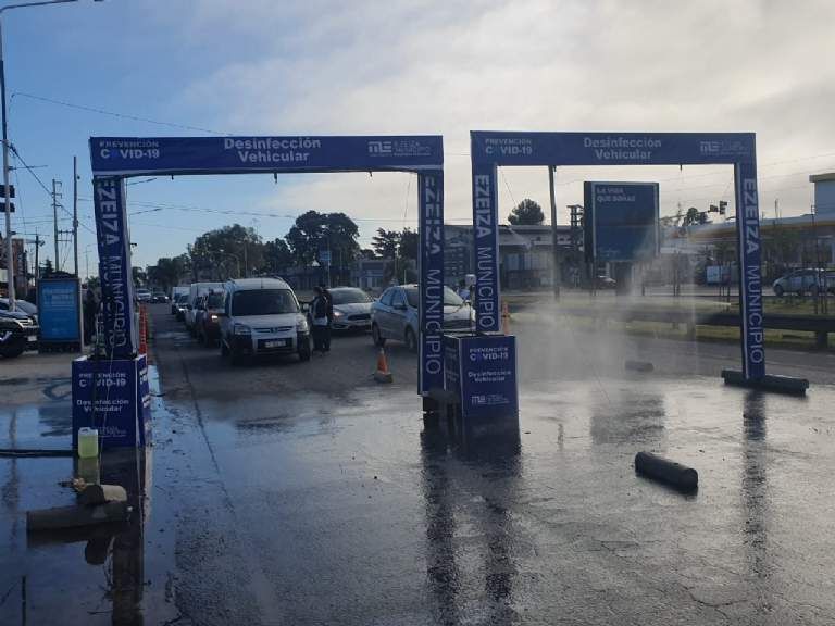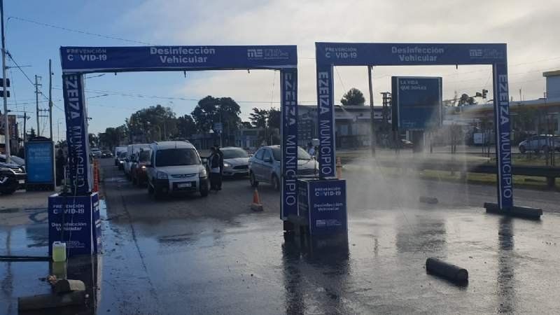 Cabe mencionar que en el control de Ezeiza, luego de presentar la documentación, los autos deben pasar de manera individual por los paneles de desinfección por lo cual demoran unos minutos más para poder continuar circulando.