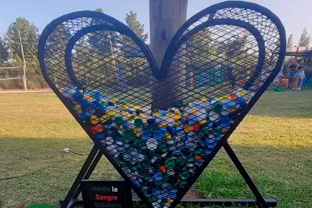 El barrio Mi Refugio presentó el “tapitómetro”, una iniciativa ecológica que busca generar conciencia sobre el reciclado de tapitas de plástico. Armaron una estructura de hierro con forma de corazón y colocaron distintos cestos cerca de los lugares de encuentro.