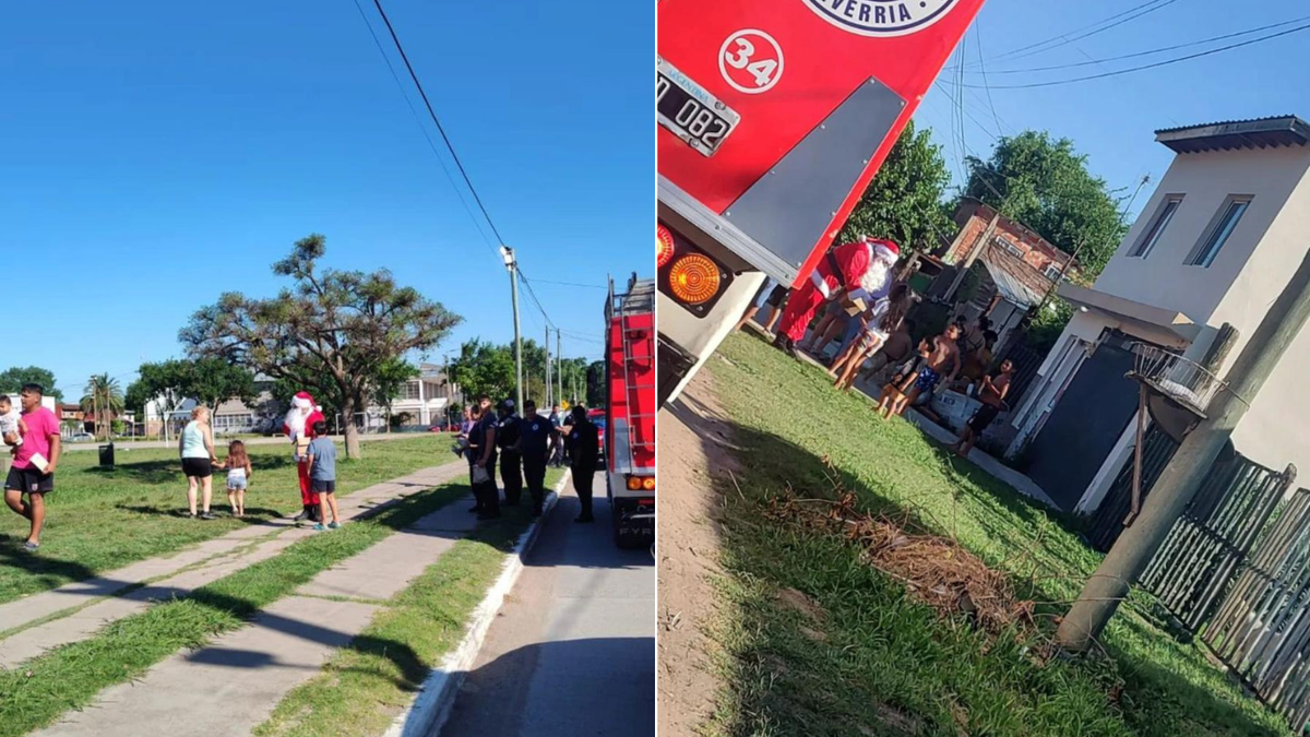Este viernes por la tarde, Papá Noel recorrió las calles de Canning en donde visitó a los vecinos de la localidad y repartió golosinas a los más chicos en la víspera de Navidad.