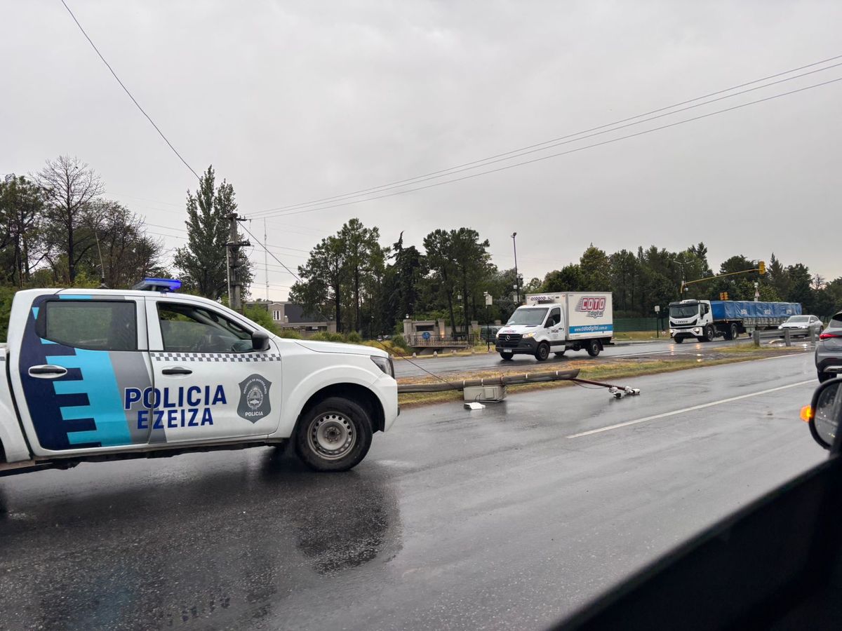 Un poste de luz cayó sobre la Ruta 58 en Ezeiza, tras las fuertes tormentas registradas durante la tarde de este jueves 15 de enero. Al momento no se registraron personas heridas y el tránsito quedó reducido en la zona.
