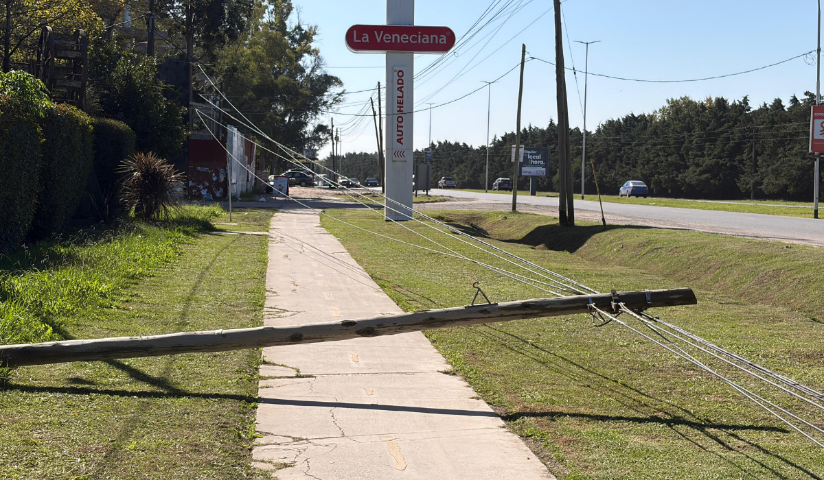 Tres postes de luz cayeron este martes por la mañana sobre la bicisenda de la avenida Mariano Castex, a la altura del gimnasio Sportclub, en Canning. El hecho se produjo tras las fuertes ráfagas de viento registradas en los últimos días, que habrían alcanzado velocidades de hasta 65 km/h.