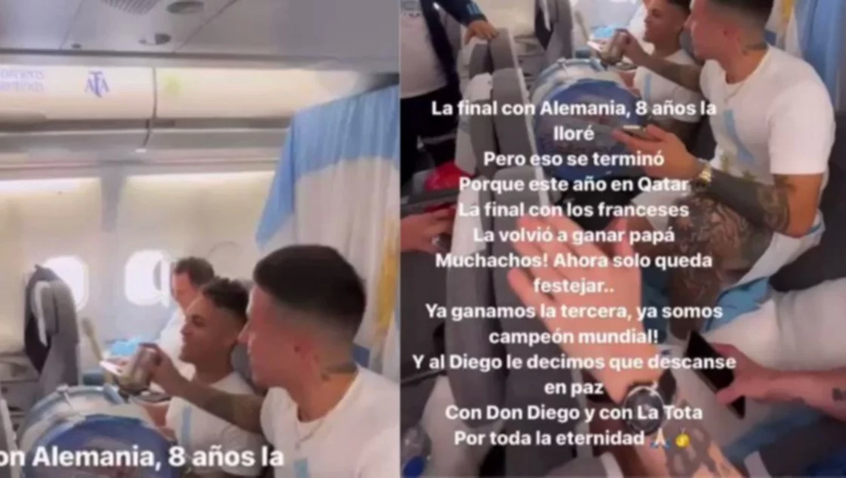 Luego de coronarse campeones en Qatar, los jugadores de la Selección Argentina aprovecharon el vuelo a Ezeiza para actualizar la letra del hit "Muchachos", el cual justamente desea que se cumpla lo logrado ayer: obtener la tercera. Ante eso, el plantel lo modificó y lo reversionó para que tenga un color especial de cara a lo que será la fiesta en la Argentina.