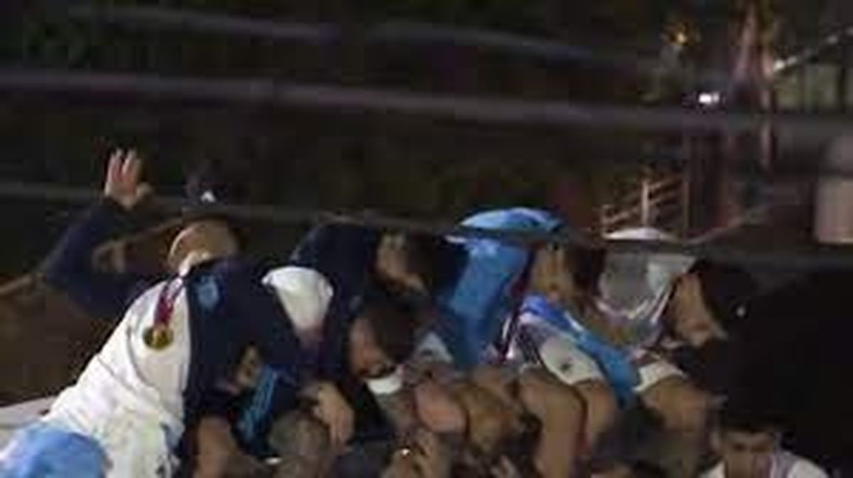 Video: en pleno festejo en Ezeiza, un cable casi lastima a la Selección Argentina