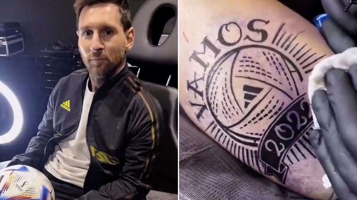 “¿Todo bien?”, preguntó Messi a la cámara en el inició un spot publicitario. Acto seguido, la Pulga le señala al camarógrafo para que grabe el “tatuaje”. La cámara sigue su rumbo, pasando por detrás del tatuador, y el video concluye con su pierna derecha tatuada con la palabra “Vamos” y “2022″, mientras que en el medio se dibujó Al Rihla, el balón que diseñó Adidas para el mundial.