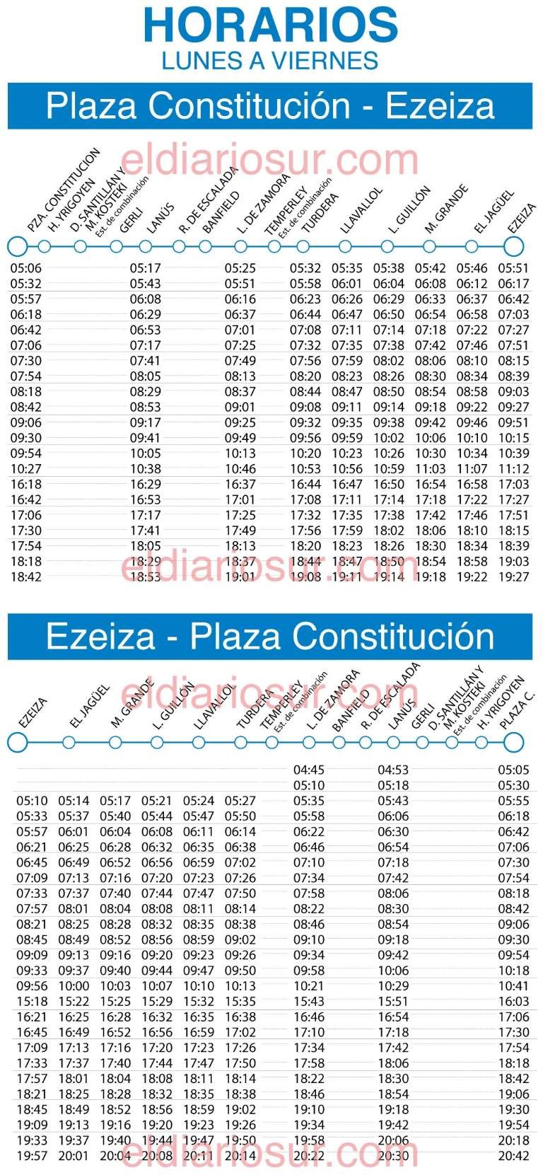Horarios del tren directo: Ezeiza - Constitución