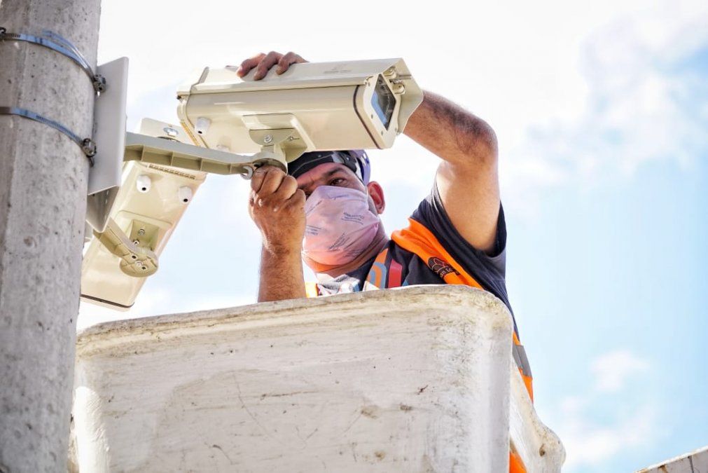 Siguen colocando cámaras de seguridad y luminaria en Luis Guillón
