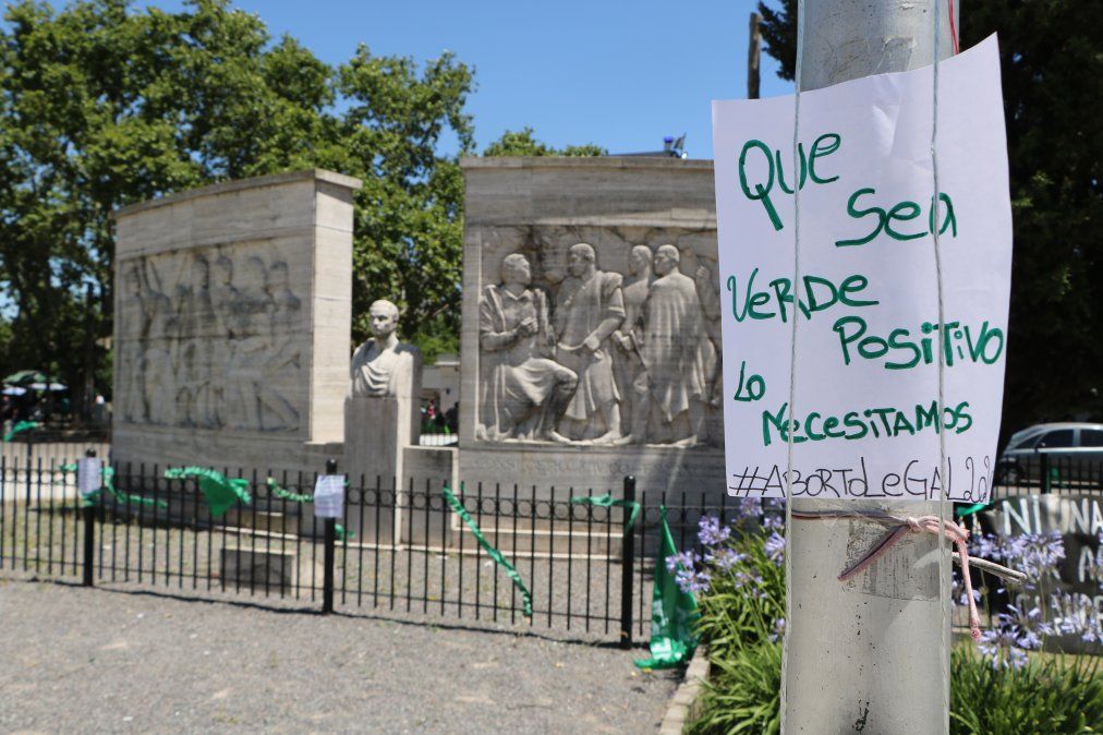 Precisamente alrededor del monumento de la Plaza de los Fundadores es donde se colocaron pañuelos, carteles y otras señales de apoyo a la aprobación del proyecto, que se está debatiendo desde el mediodía del jueves en la Cámara de Diputados.