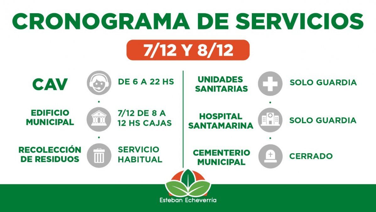 ¿Cómo funcionarán los servicios en Esteban Echeverría el 7 y 8 de diciembre?