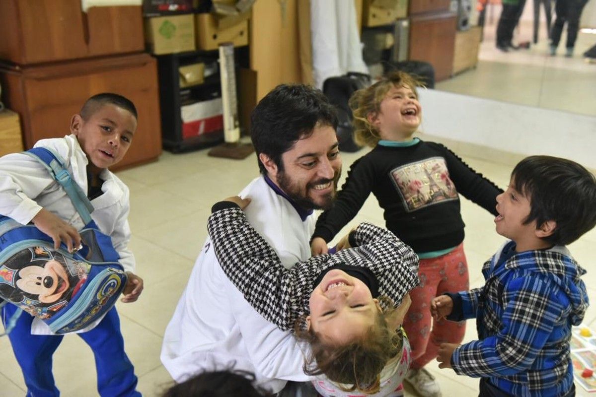 “Estábamos trabajando en un country en Canning, El Refugio, y nos preguntaron quiénes querían hacer una actividad recreativa en horario laboral del otro lado del alambre y levanté la mano. Fuimos cuatro personas y tuvimos una primera experiencia en la sociedad de fomento que nos motivó a seguir yendo. Hablé con las personas que lo organizaban y empecé a ir ahí sin más motivación que ayudar, con mucha inocencia y juventud”, recordó Martín, que tras esa primera experiencia decidió fundar la ONG SonRisas el 3 de junio del 2004.