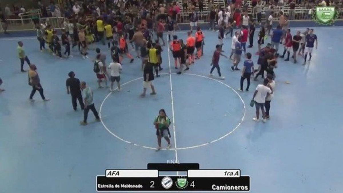 Una batalla campal se desató en un partido de futsal de la AFA tras el descenso de Camioneros a la Primera B luego de la derrota por 4-2 contra Estrella de Maldonado, en la última fecha de la fase por la permanencia.