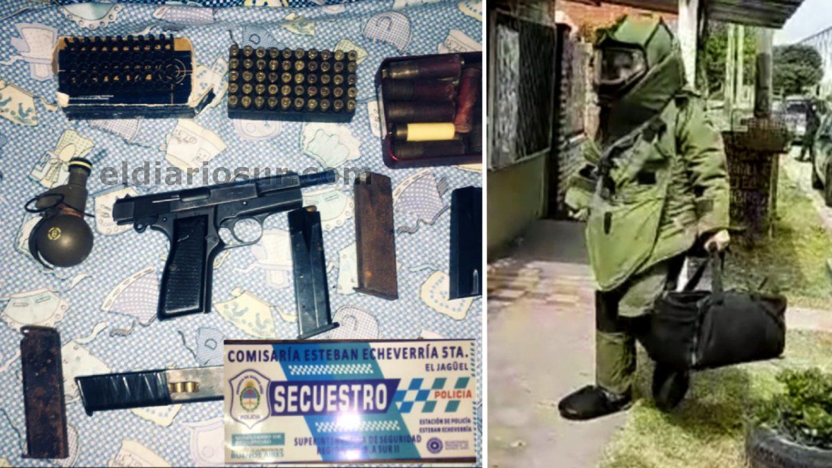 Durante el procedimiento, personal de la comisaría incautó un arma calibre 9 mm, 91 municiones, cinco cargadores y, además, una granada de mano FMK-2, que estaba apta para su utilización.