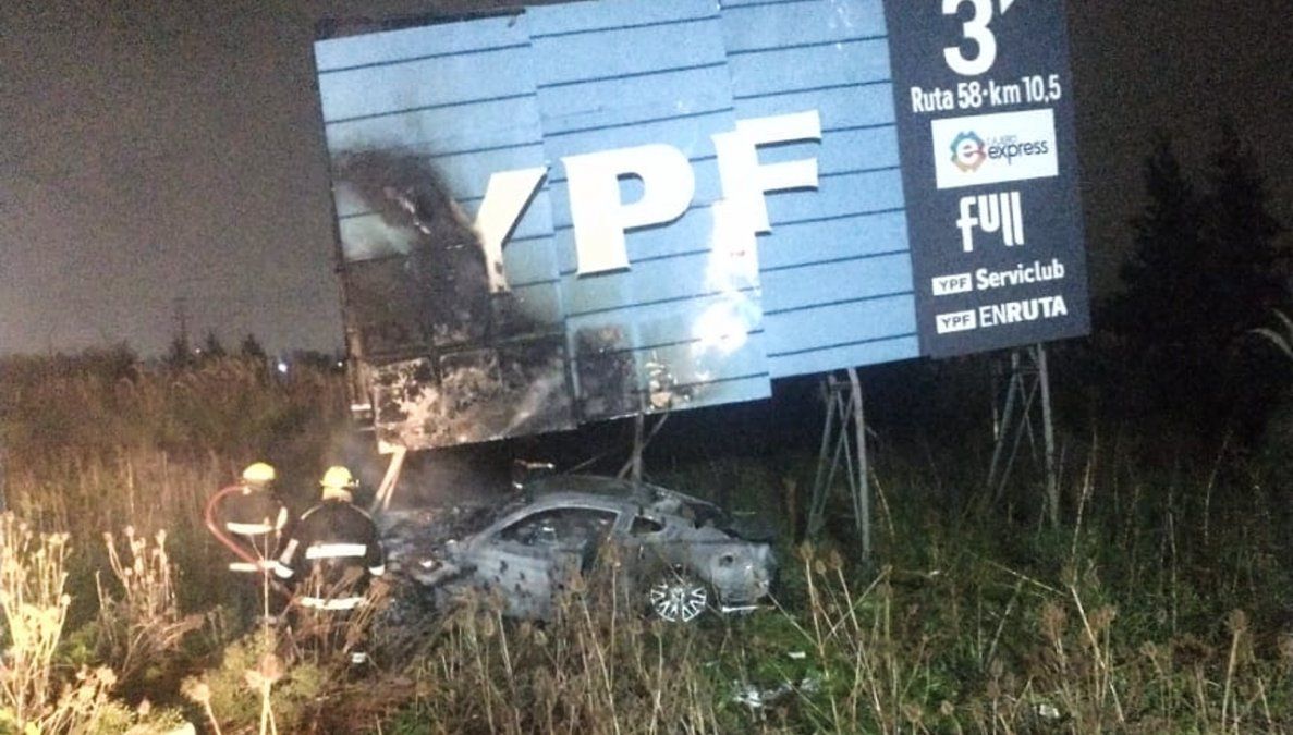 Según precisaron fuentes que estuvieron en la escena del choque, el auto en cuestión es un Ford Mustang, y habría despistado de la Ruta 58 a causa del mal clima. El coche habría cruzado una parte de la banquina con acumulación de agua que lo hizo perder el control y terminar despistando.