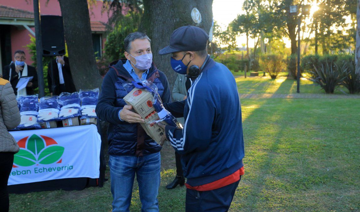 El intendente de Esteban Echeverría, Fernando Gray, encabezó este martes, en el Museo Histórico La Campana, la entrega de 17 kits de indumentaria a vecinas y vecinos del distrito que son titulares del programaPotenciar Trabajo”.