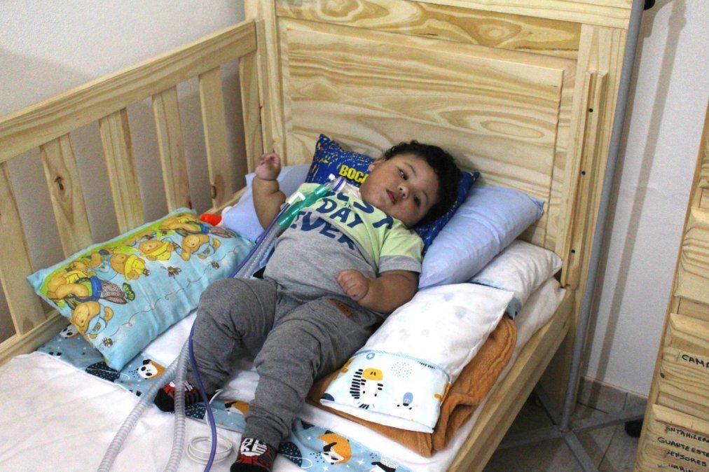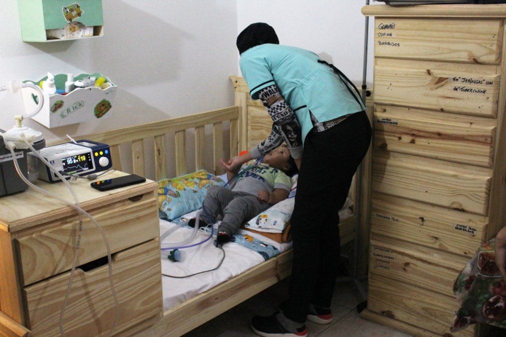 La rutina de Erick comienza cuando se levanta a media mañana, aunque a veces duerme durante 16 horas seguidas. Tiene todos los días kinesiología respiratoria, dos veces al día, y kinesiología motora, una vez al día. También, tres veces por semana, terapia ocupacional y fonoaudiología. En estos días trabajan en la estimulación para que pueda alimentarse por la boca y dejar de hacerlo a través de un botón gástrico.
