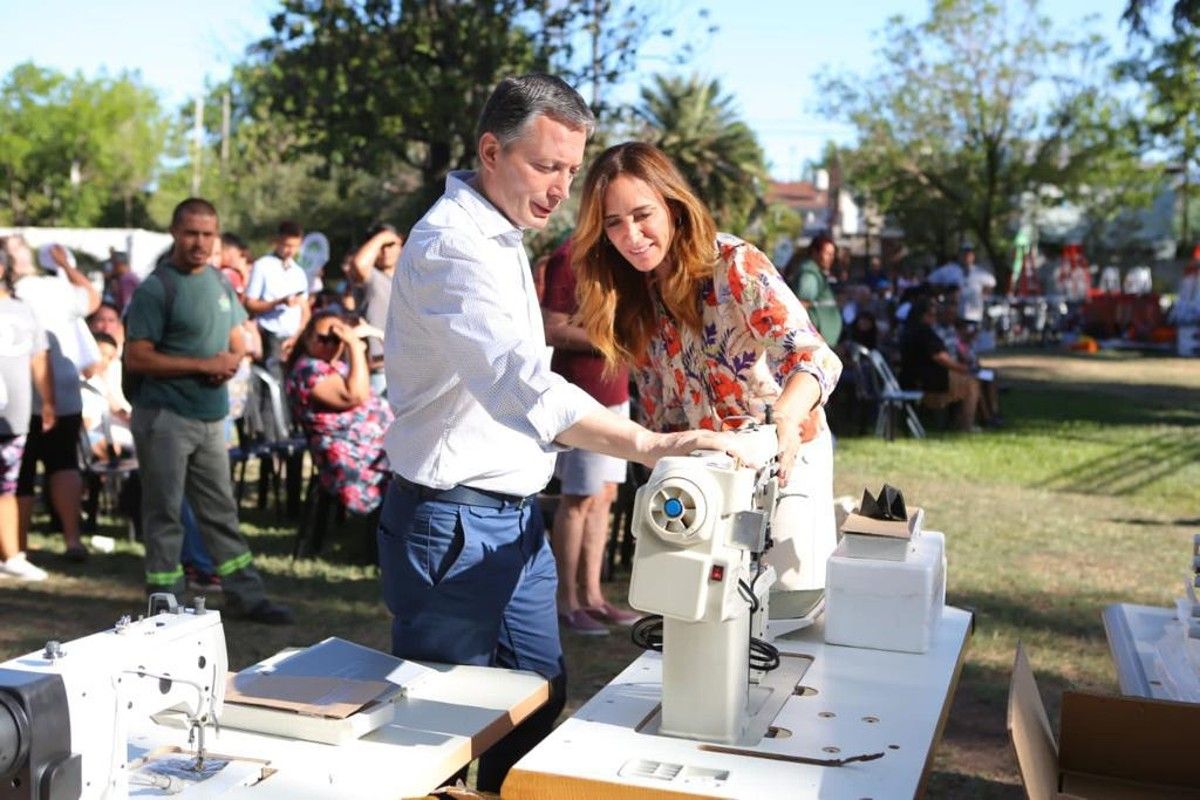 Fernando Gray y Victoria Tolosa Paz entregaron maquinarias, herramientas e insumos a emprendedores