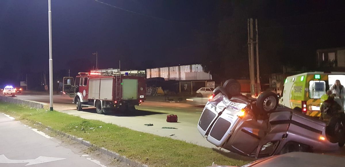 La mala maniobra a gran velocidad sucedió cerca de las cuatro de la madrugada de esta jornada y terminó involucrando a cuatro rodados. En este marco, una camioneta Renault Kangoo terminó volcando sobre la traza vial.