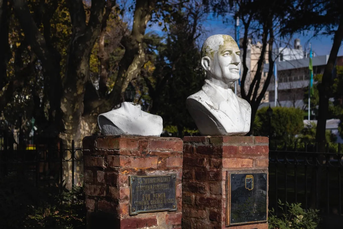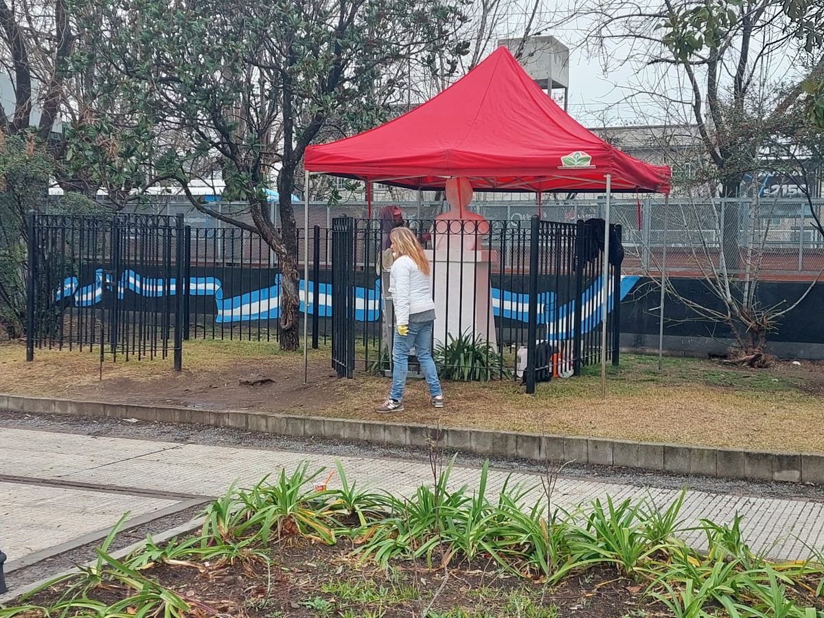 De todos modos, el municipio de Esteban Echeverría ya colocó una carpa alrededor del busto que se encuentra en la plaza de la estación de Luis Guillón mientras continúan arreglándolo.