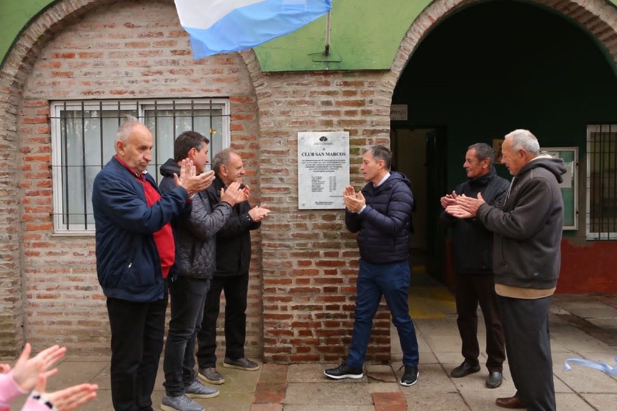 Durante la actividad se inauguró una placa conmemorativa en reconocimiento a la trayectoria y al rol social que cumple el Club San Marcos en la comunidad de Esteban Echeverría. Además, el intendente hizo entrega a las autoridades del club de un subsidio que será utilizado para comprar materiales de construcción y elementos necesarios para la institución, en la que participan cerca de 300 chicas y chicos que practican rugby y hockey.
