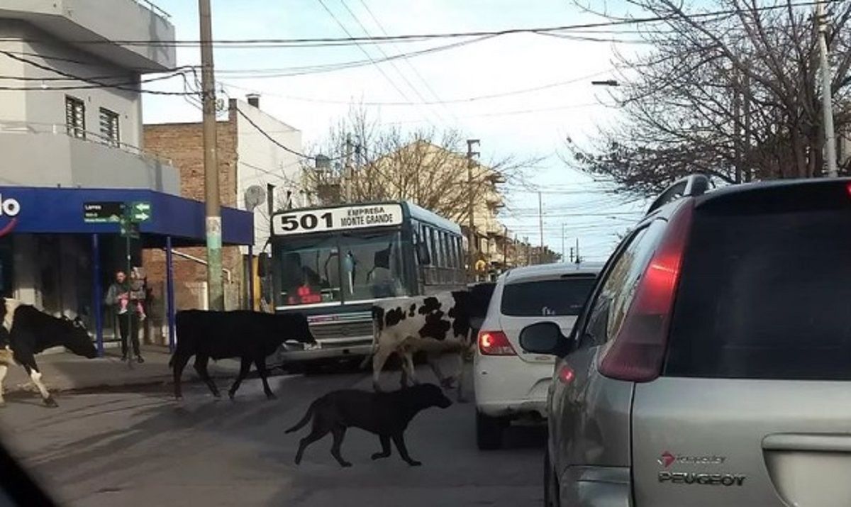 En las últimas horas comenzó a circular la imagen de un grupo de vacas paseando por una zona céntrica de Monte Grande.