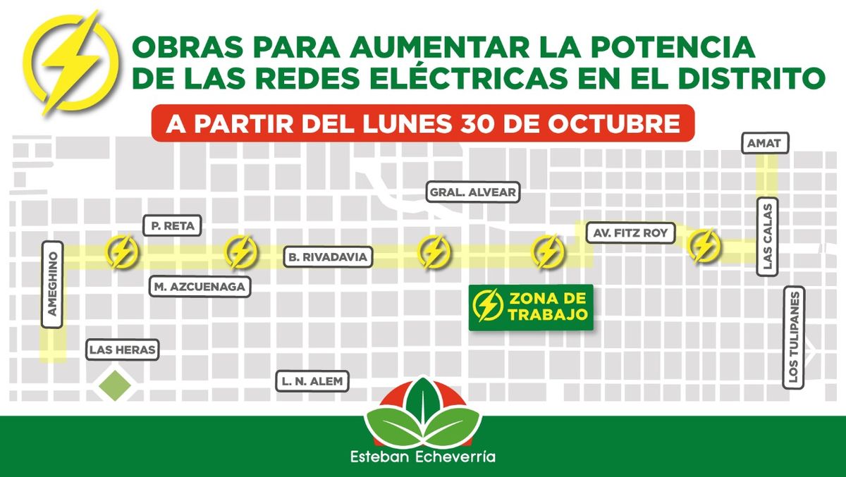 A partir de las gestiones realizadas por el Municipio de Esteban Echeverría, la empresa distribuidora de energía eléctrica Edesur iniciará las obras que permitirán aumentar la capacidad de potencia de las redes eléctricas para dar respuesta al crecimiento de la demanda en el distrito.