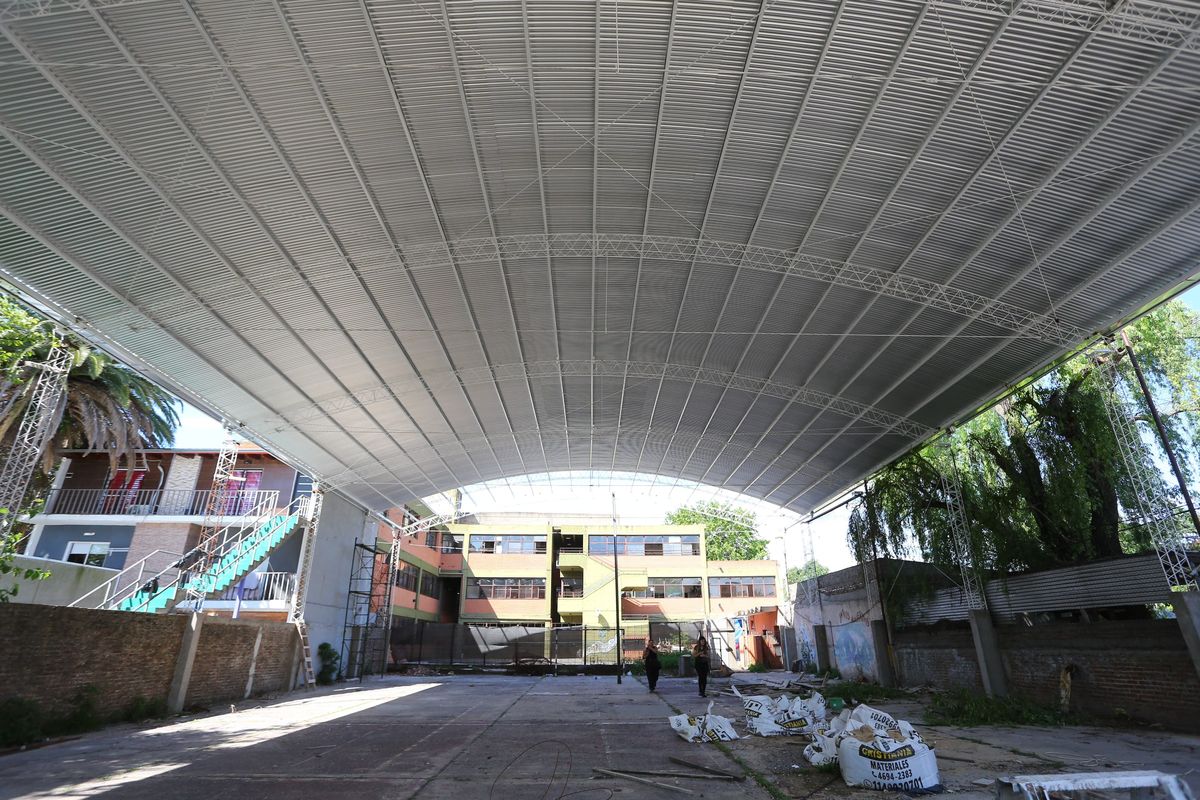 Avanza la construcción de un techo parabólico en las escuelas Saavedra y Muñiz de Monte Grande