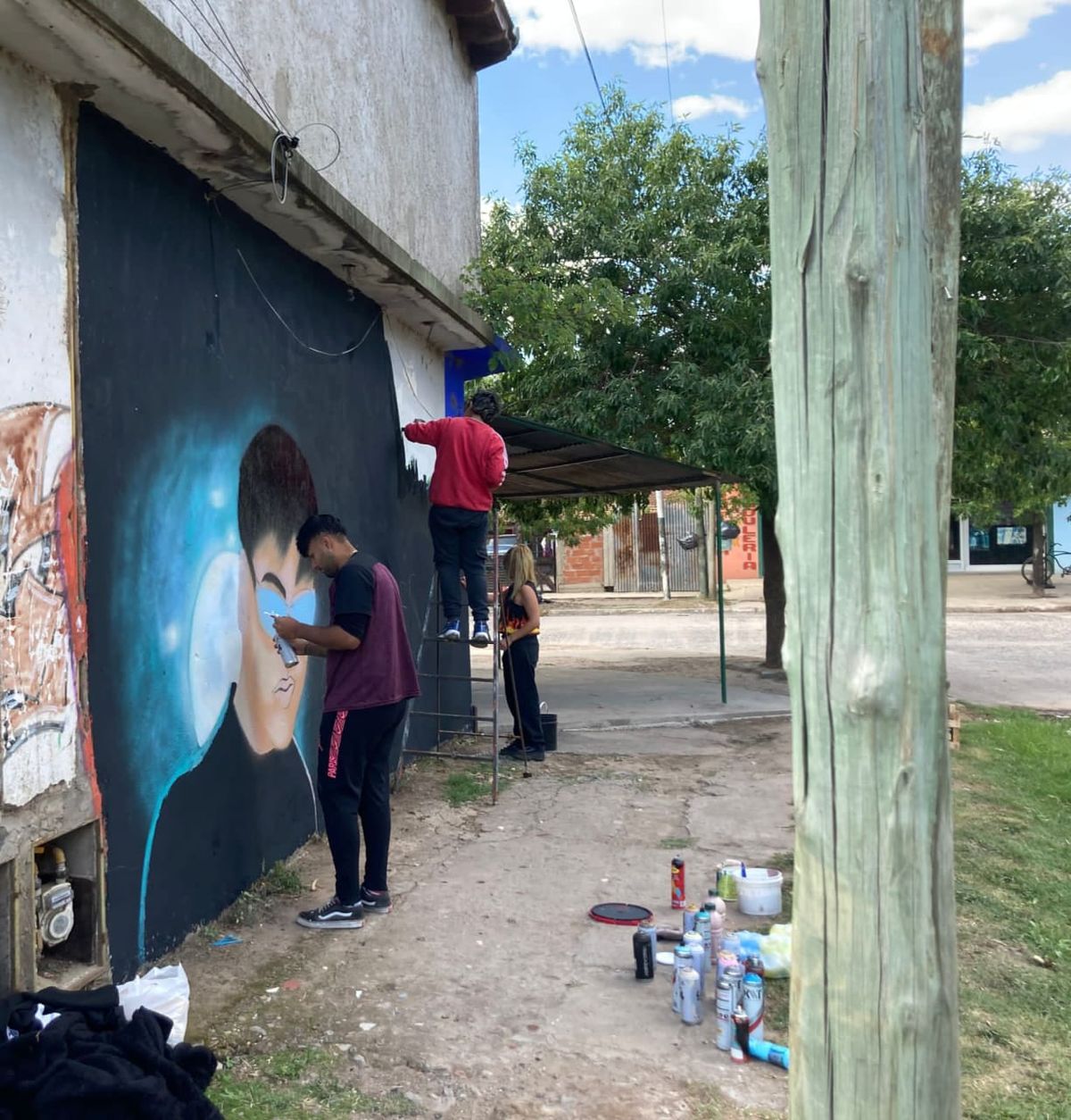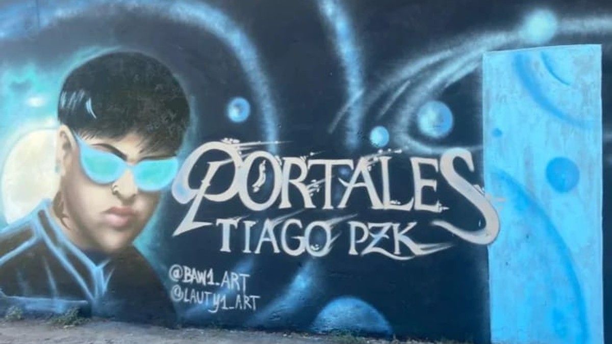 “Yo había hablado con la mamá de Tiago PZK antes de que salga Portales para hacerle un mural a él. Para mí es como hacerle un mural a un ídolo, un honor. Ella me dijo que sí, que no tenía problemas, y el sábado 18 de febrero pude ir para Monte Grande a pintarlo”, contó el joven de 26 años a El Diario Sur.