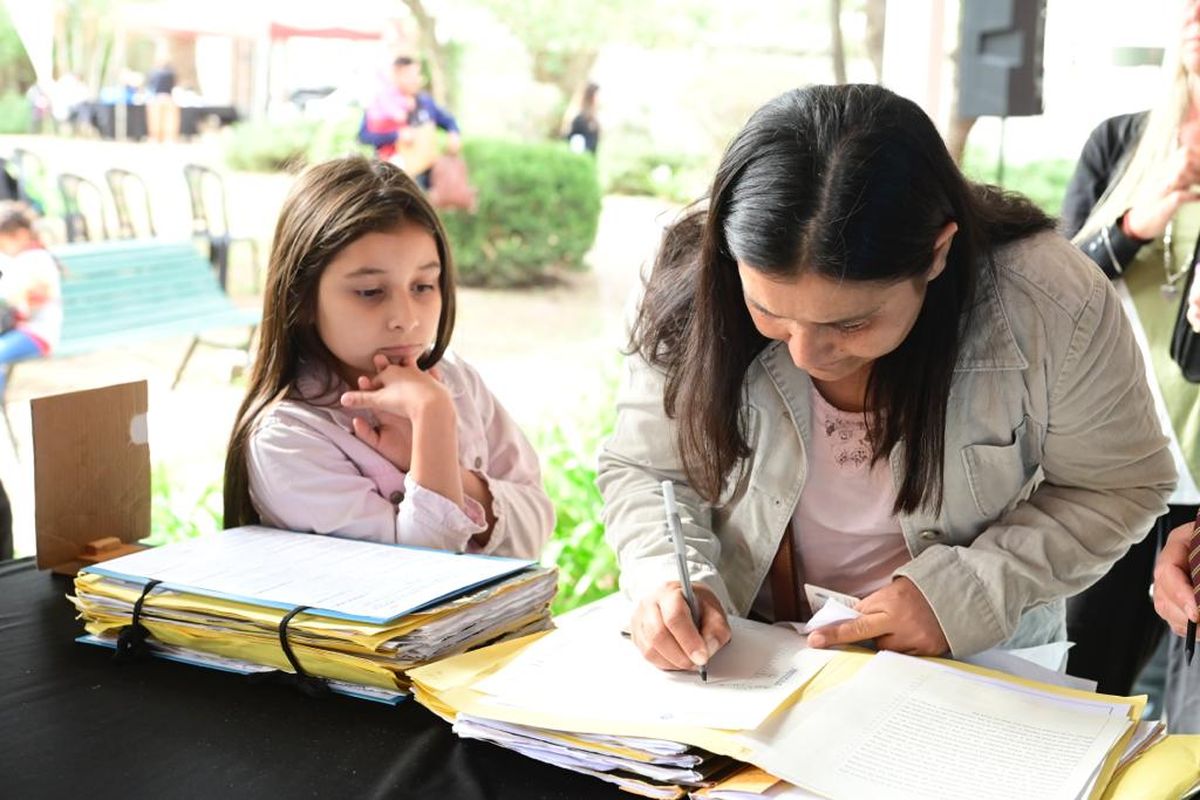 Las rúbricas corresponden a familias de las cinco localidades del distrito y pertenecen a la escrituración social —destinada a los sectores con menos recursos para que puedan tener su título de propiedad— y a escrituras realizadas en el marco de la ley 24.320 de regulación dominial de prescripción administrativa.