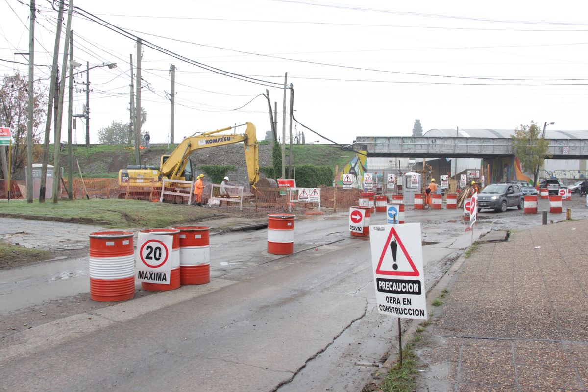 Los vehículos tienen que circular por el lado derecho del paso a nivel, que es de tierra. Una obra hídrica se lleva adelante en el lugar.
