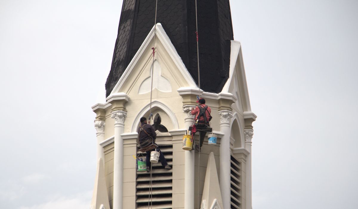 Desde el año pasado se vienen realizando tareas de mantenimiento y restauración en el templo. "El trabajo de pintura en el campanario estuvo detenido porque se restauró el techo del lado derecho y se cambió la canaleta", explicó Agustín Celoria, un miembro de la Iglesia que se encarga del consejo económico parroquial, que se lleva adelante en conjunto con el párroco de turno, en este caso el padre Carlos Ramos.