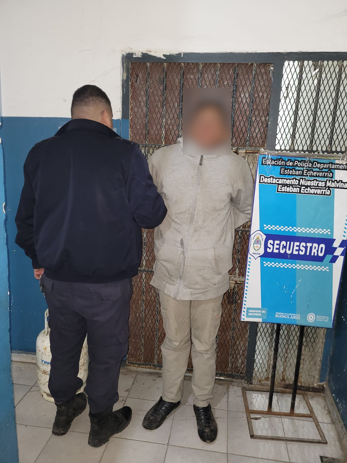 Este último fue detenido y trasladado a la Estación de Policía Departamental de Esteban Echeverría, Destacamento Nuestras Malvinas.