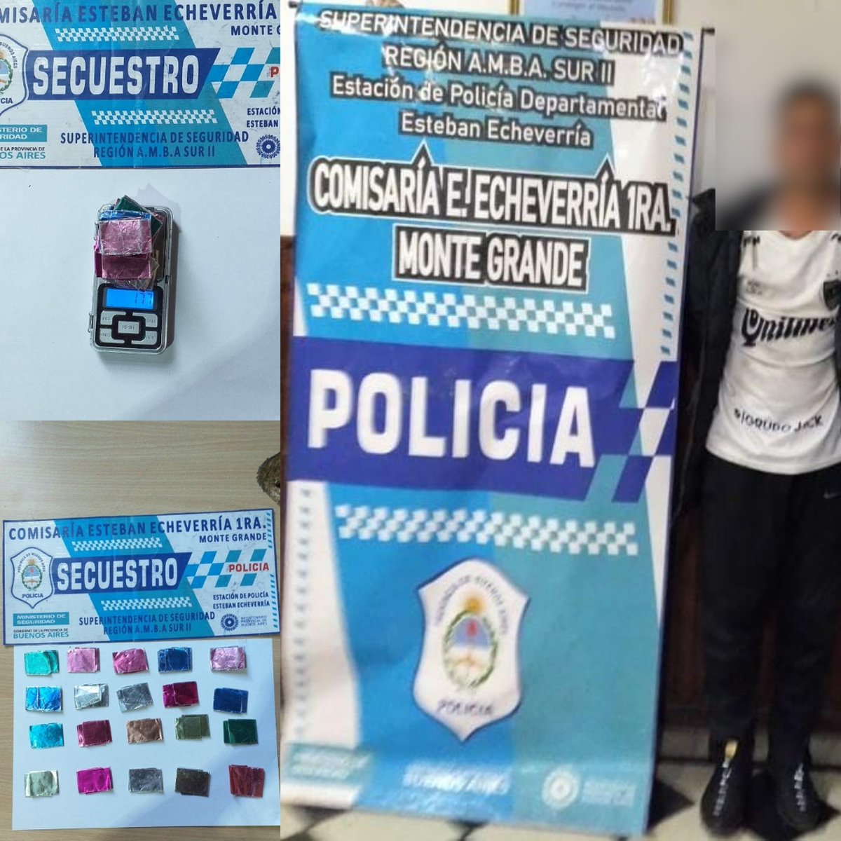 A la hora de realizarse la requisa, se le incautaron 20 papeles de diferentes colores metalizados en los cuales poseía cocaína. El ‘dealer’ fue trasladado a la Comisaria 1ra Esteban Echeverría de Monte Grande y su causa quedó a cargo de la UFI 14 de Lomas de Zamora.