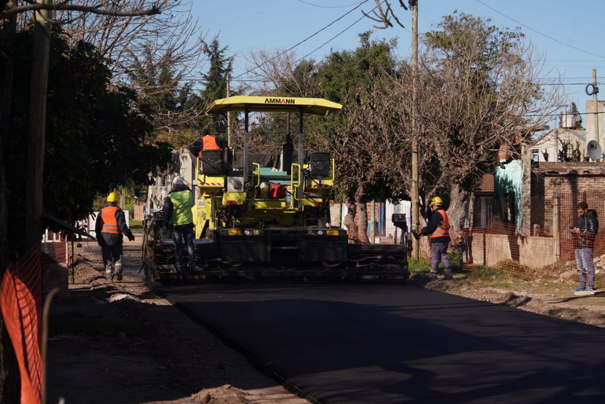 Las tareas consisten en la construcción de una carpeta asfáltica en calles del barrio Santa Catalina de Luis Guillón.