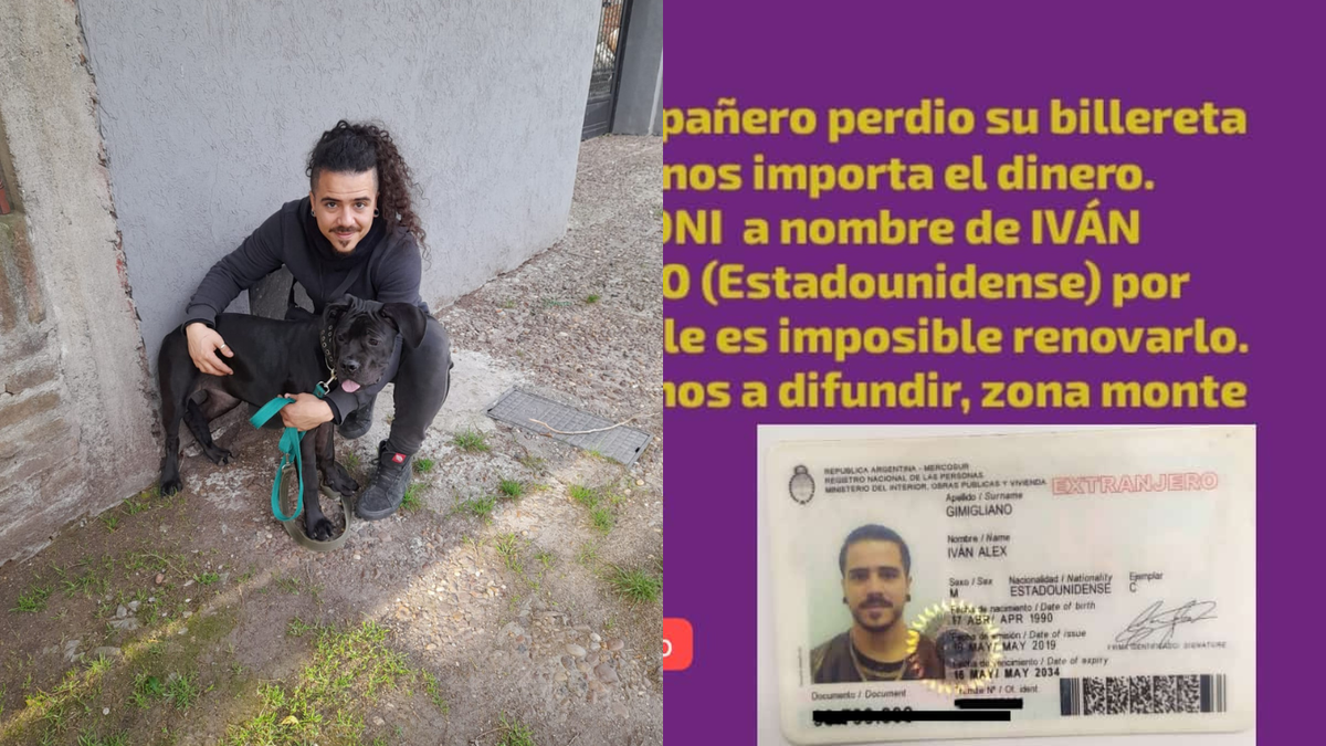 Iván Alex Gimigliano es un vecino de Monte Grande que nació en Estados Unidos y que se dedica a pasear perros por las calles de esta localidad de Esteban Echeverría. El pasado 12 de enero, en uno de sus recorridos habituales, perdió su DNI de extranjero estadounidense y ahora busca recuperarlo.