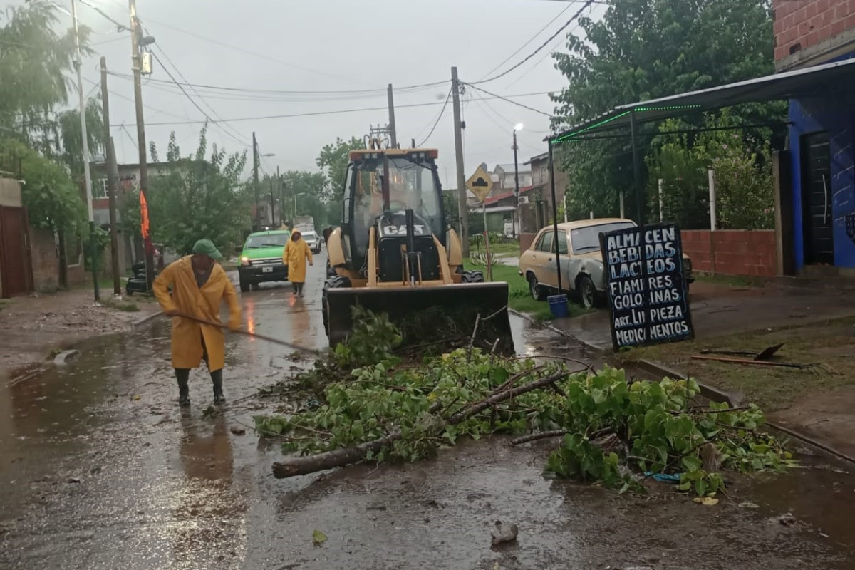 Las cuadrillas realizan tareas de limpieza de sumideros y drenajes pluviales, recolección de residuos y retiro de ramas y árboles caídos. Además, continúa el relevamiento de postes caídos o inclinados para enviar la información correspondiente a las empresas prestatarias de los servicios. Asimismo, se delimitan las zonas para evitar daños.