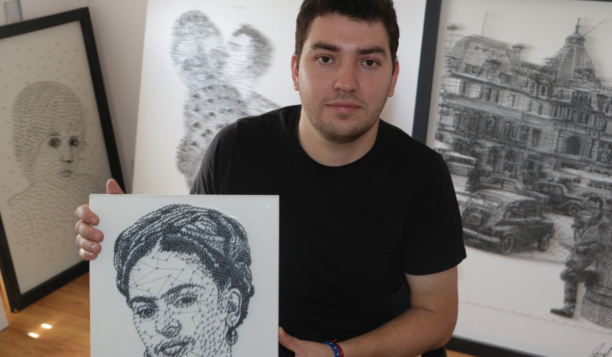 Renunció a su trabajo para dedicarse a su pasión por el arte: hace obras con clavos e hilo