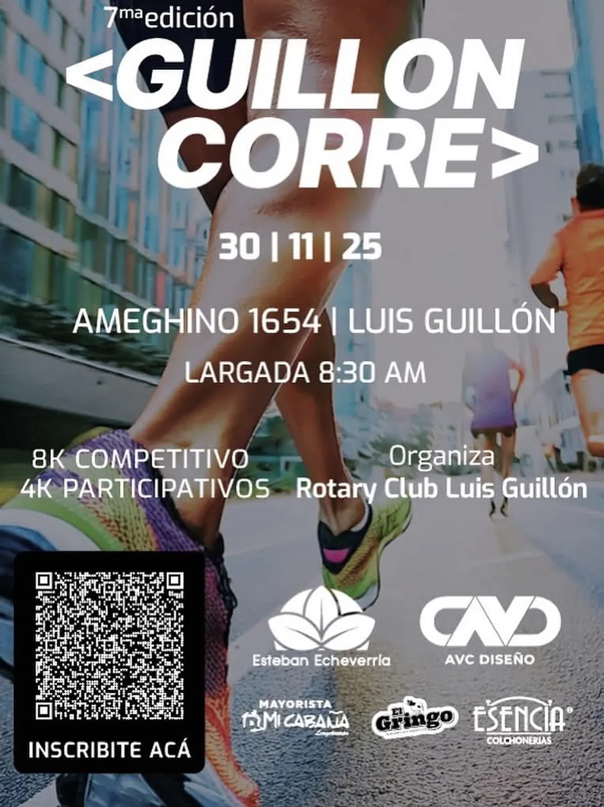 El próximo sábado 30 de noviembre se llevará a cabo la séptima edición de “Guillón Corre”, el evento solidario más convocante de Luis Guillón. La carrera, organizada por el Rotary Club local, tendrá punto de partida en Ameghino 1654 y comenzará a las 8:30 de la mañana.