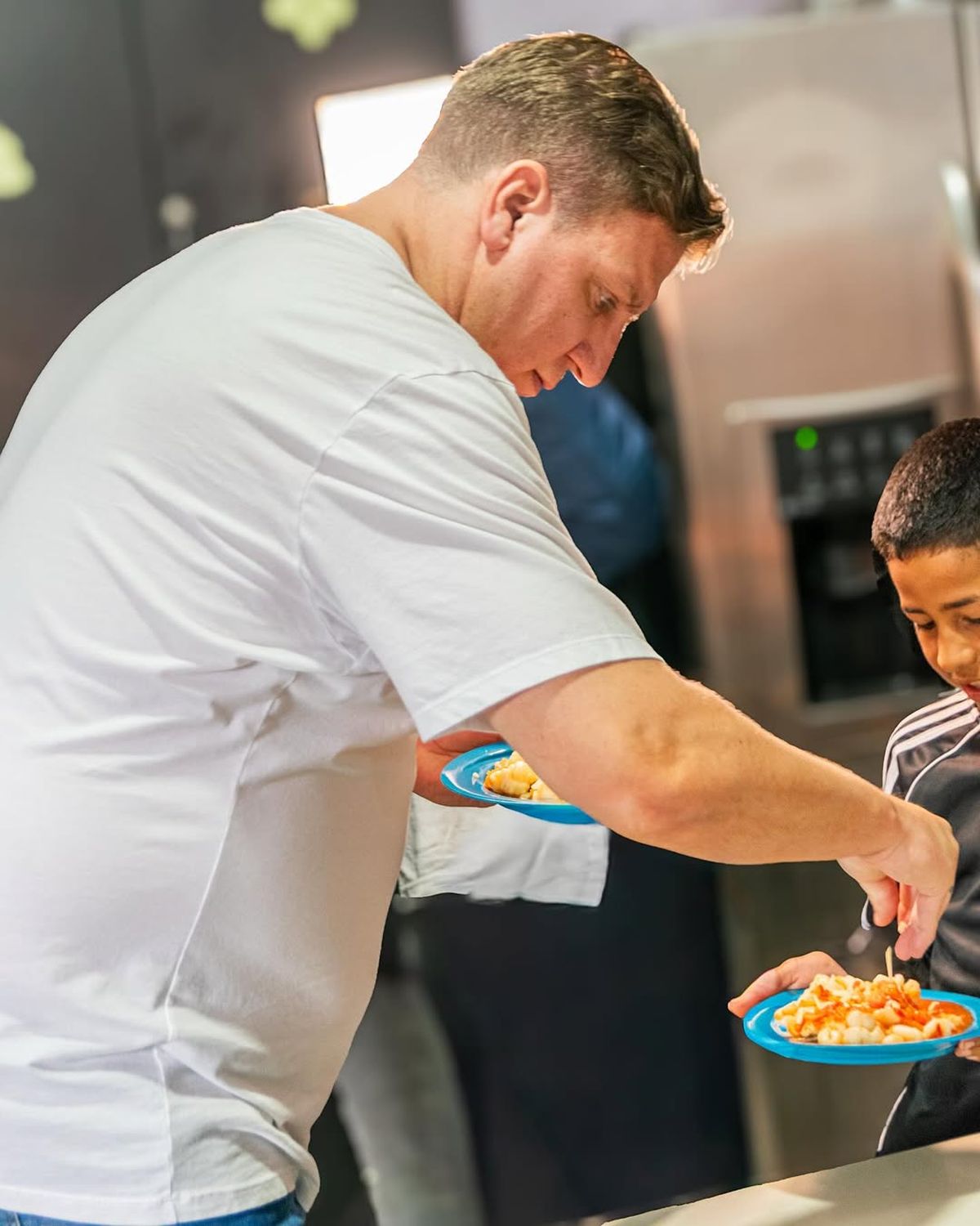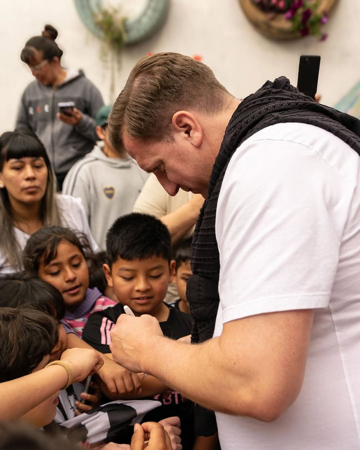 La participación del exfutbolista y del equipo del bar sumó apoyo a las tareas que realizan de forma permanente, en el que el exjugador formó parte de la preparación de alimentos y compartió el trabajo con los voluntarios de la institución, además de sacarse fotos y firmar autógrafos para los chicos.