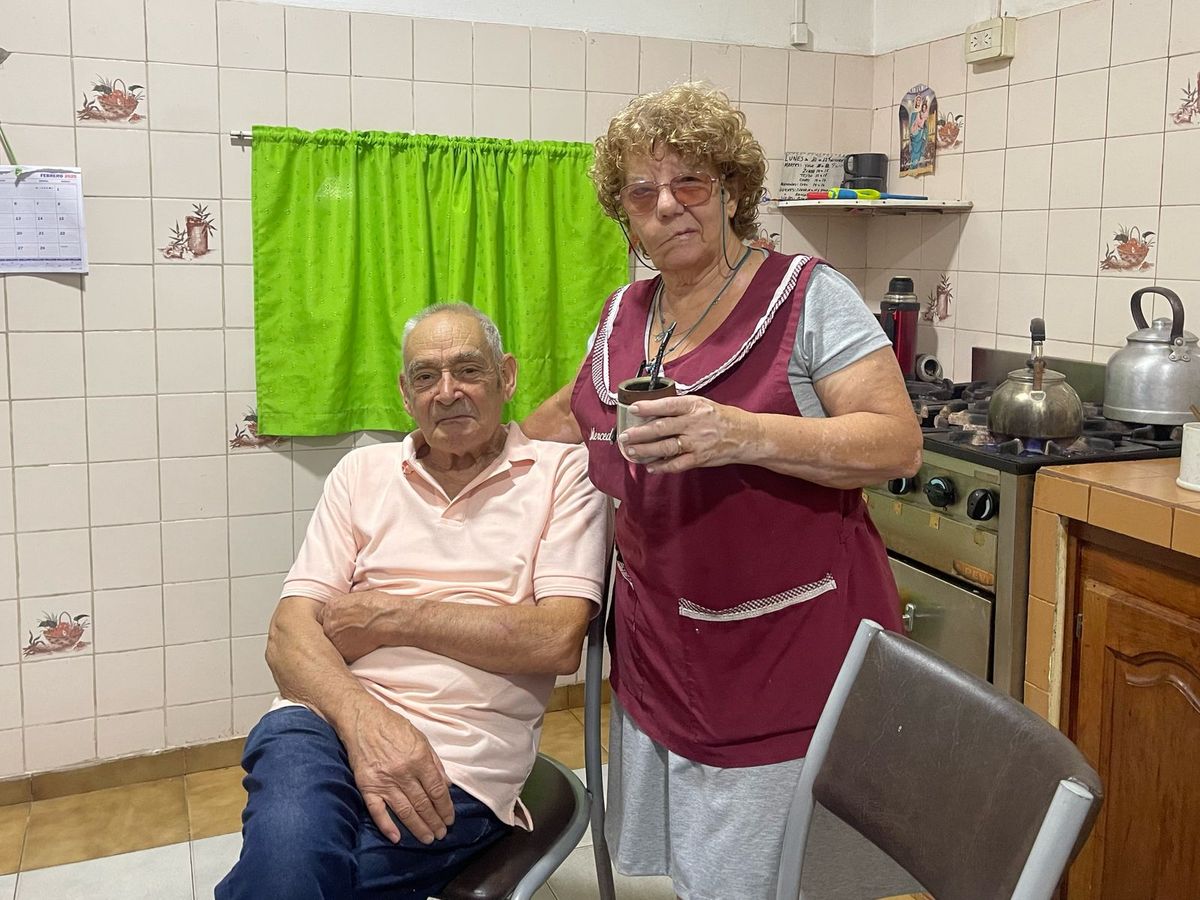 Mientras toman mate en la cocina recuerdan juntos los inicios de su romance. “Nos conocimos en el barrio, nos juntábamos a bailar en los asaltos, pero no teníamos trato”, contó Mercedes. Sin embargo una amiga le dijo que Miguel estaba enamorado de ella y entonces Mercedes se animó a llamarlo para su cumpleaños.