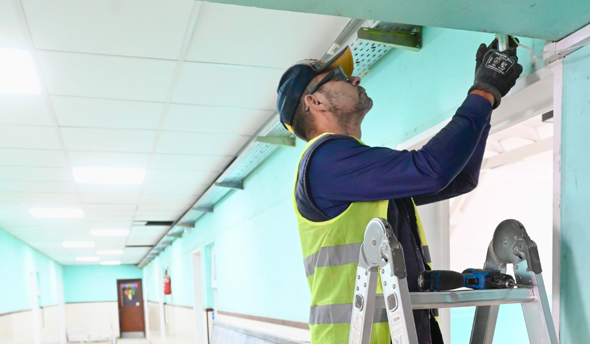 El Municipio de Esteban Echeverría continúa con las refacciones en la Escuela Primaria N° 54 de 9 de Abril, que durante el fuerte temporal del 8 de marzo sufrió la rotura y voladura del techo, lo que, a su vez, ocasionó daños en siete aulas, baños, la biblioteca, el Salón de Usos Múltiples (SUM) y la cocina.