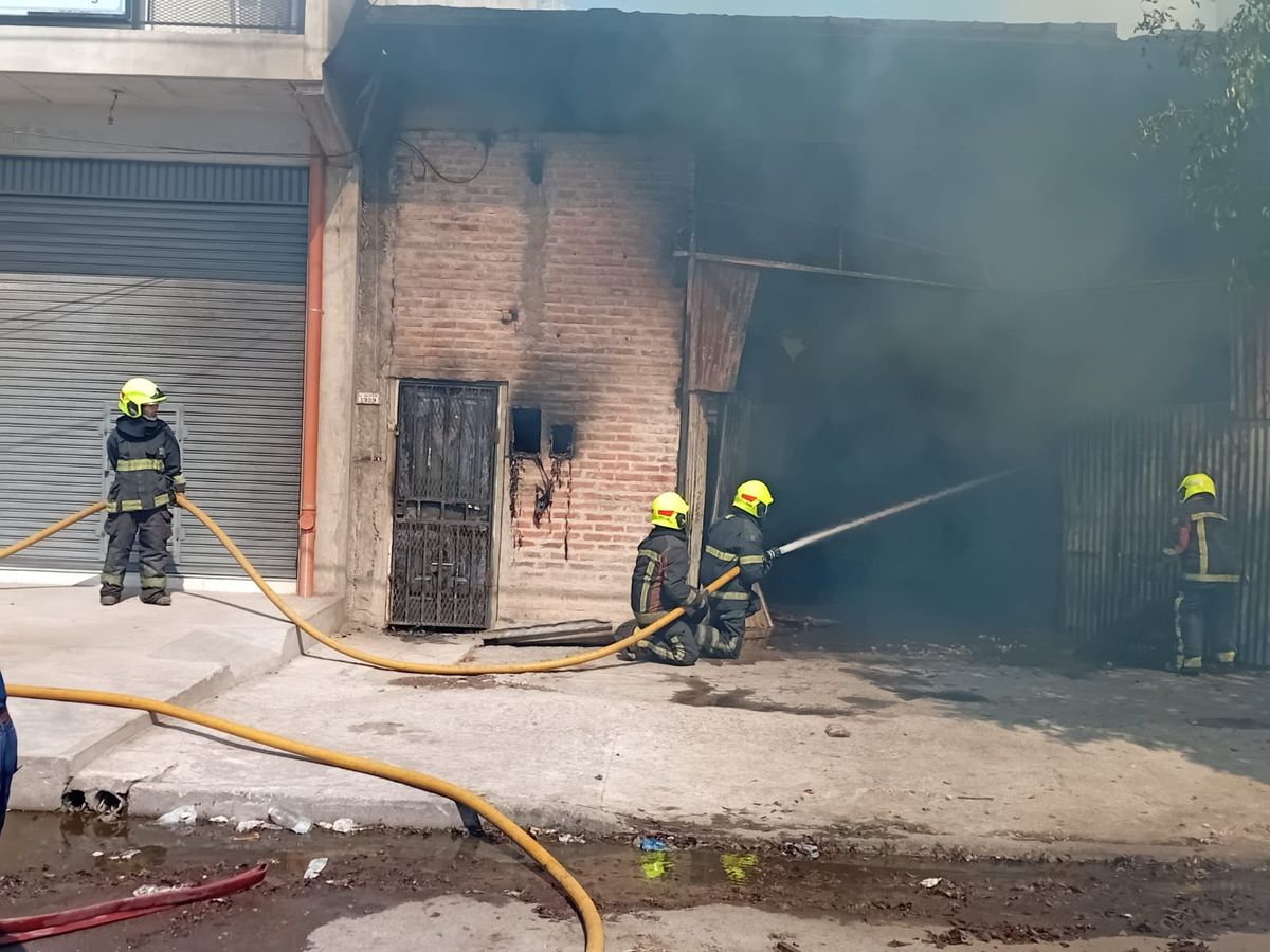 El fuego se desató en un taller ubicado en 9 de Abril, Esteban Echeverría. Bomberos trabajaron con cinco dotaciones y rescataron a una mujer.