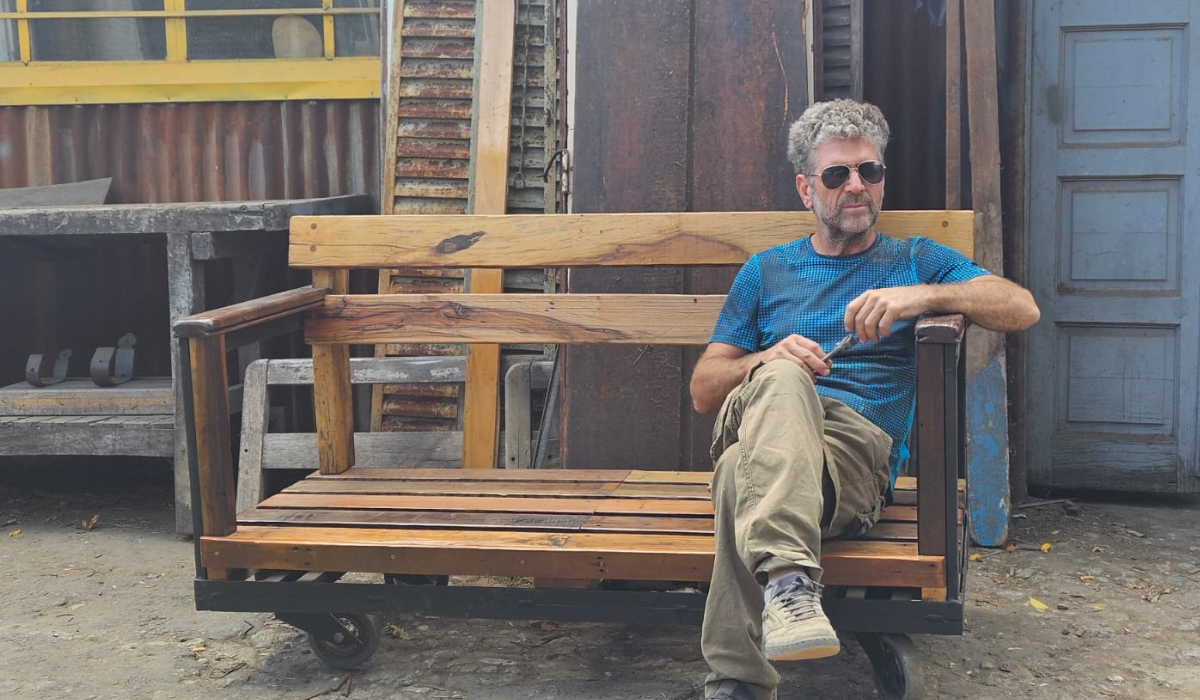 La reutilización también es parte central de los muebles que fabrica. Molina suele conseguir materiales en remates o recibir piezas que le acercan vecinos y conocidos: “A veces voy a comprar a remates o me traen cosas y ya miro y se me ocurre algo”, dijo. Uno de los ejemplos es un banco que creó a partir de un antiguo carretón del Mercado Central. “Un hombre me trajo un carretón y me dijo ‘fijate qué se puede hacer con esto’. Lo tuve dos años tirado en el fondo y un día se me ocurrió hacer un banco. Lo hicimos y lo vendí el mismo día”, recordó.