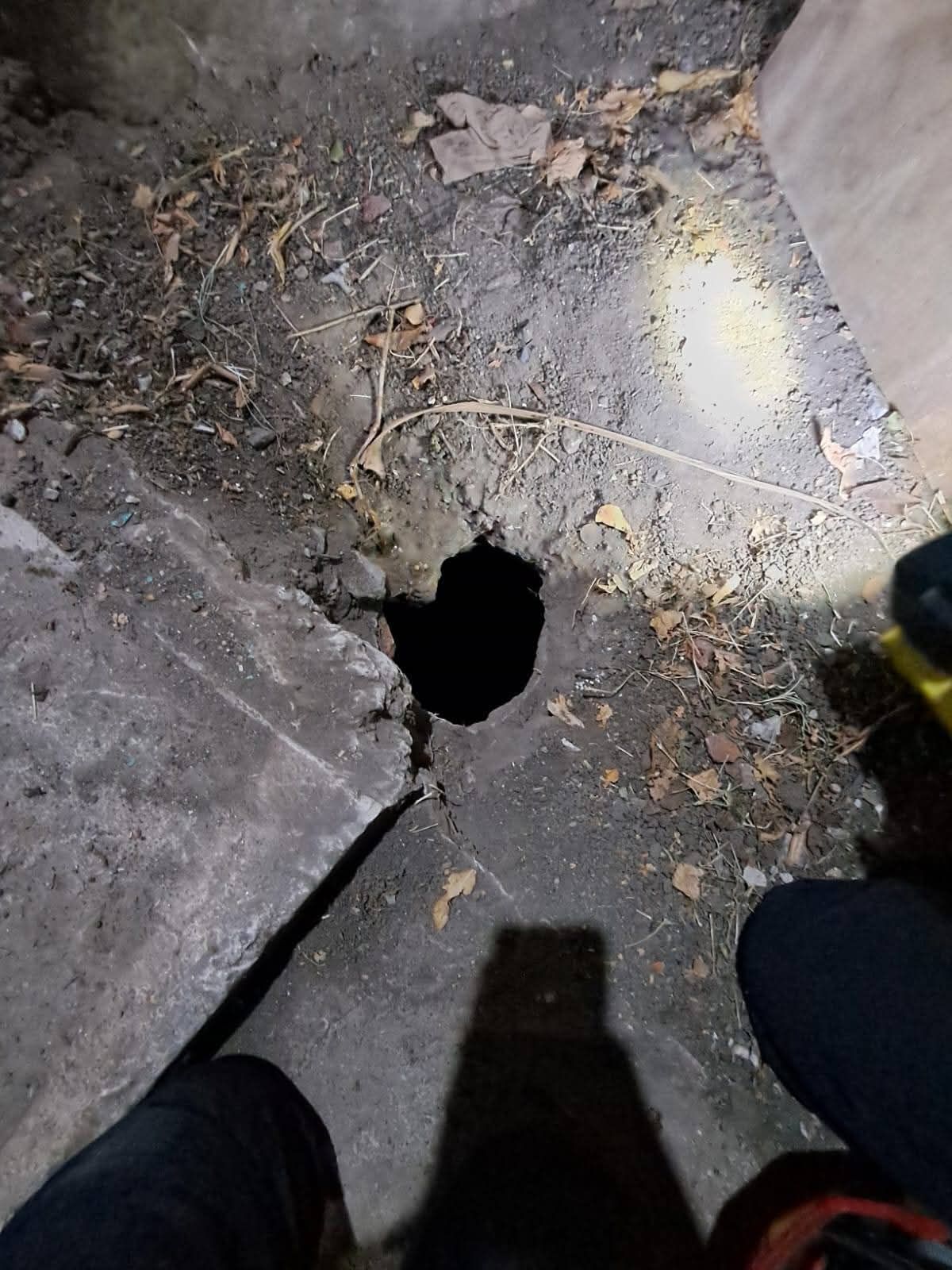 Según informaron desde el cuartel, el felino había caído por un agujero de pequeñas dimensiones, por lo que fue necesario ampliar el sector de acceso para poder realizar las maniobras de rescate.