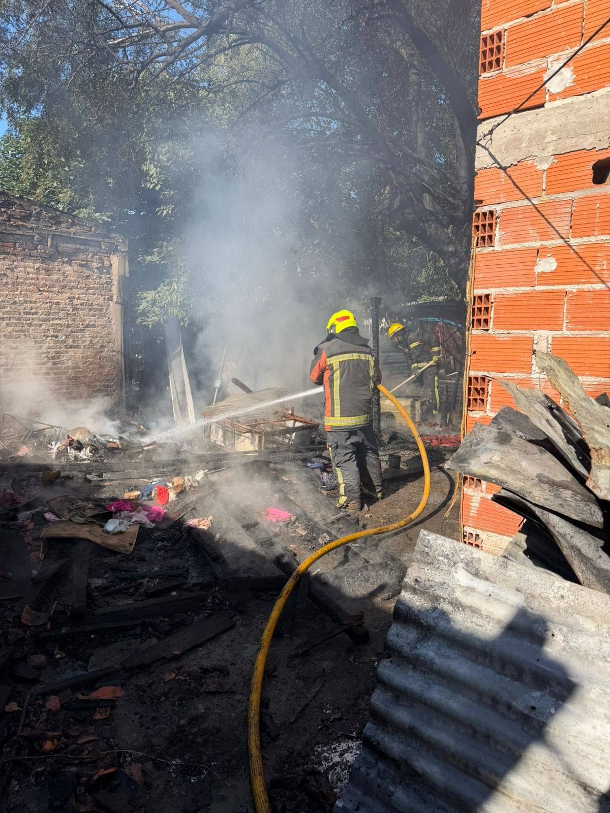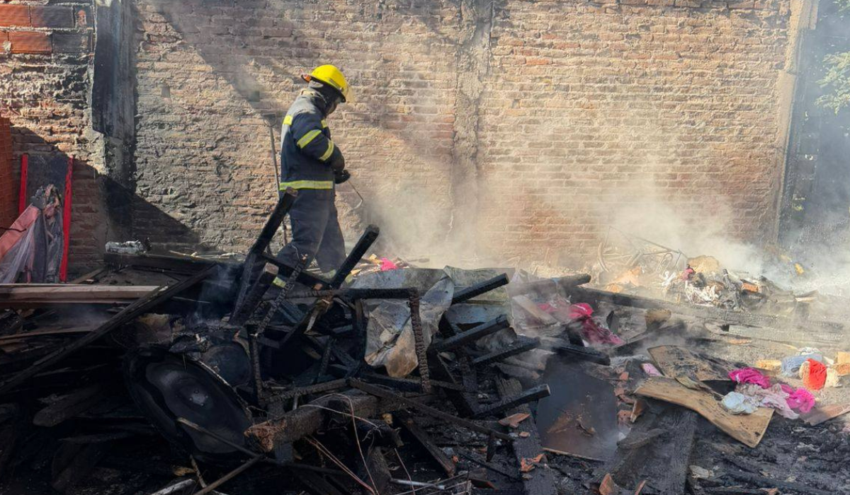 Las llamas destruyeron una casa precaria en El Jagüel. Bomberos trabajaron en el lugar y no se registraron víctimas.