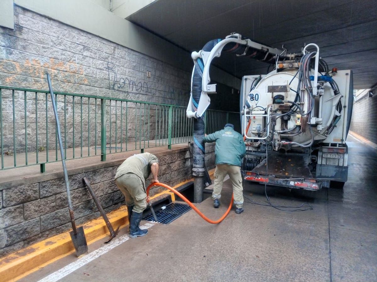 Los equipos realizan tareas de limpieza de sumideros, drenajes pluviales y bocas de tormenta; recolección de basura y residuos que obstruyen la circulación del agua en los arroyos y retiro de ramas caídas en la vía pública.